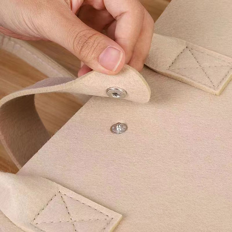 اکثر کیسه های هدیه به گونه ای طراحی شده اند که در قسمت بالایی باز شوند که باعث ایجاد یک مشکل کوچک می شود. مردم ممکن است نگران باشند که هدیه داخل ممکن است به طور تصادفی بیفتد، بنابراین برای حل این مشکل یک دکمه ضربه ای اضافه کردیم. باز و بسته شدن آن آسان است، اما به شما کمک می کند تا از محتویات داخل آن محافظت کنید.